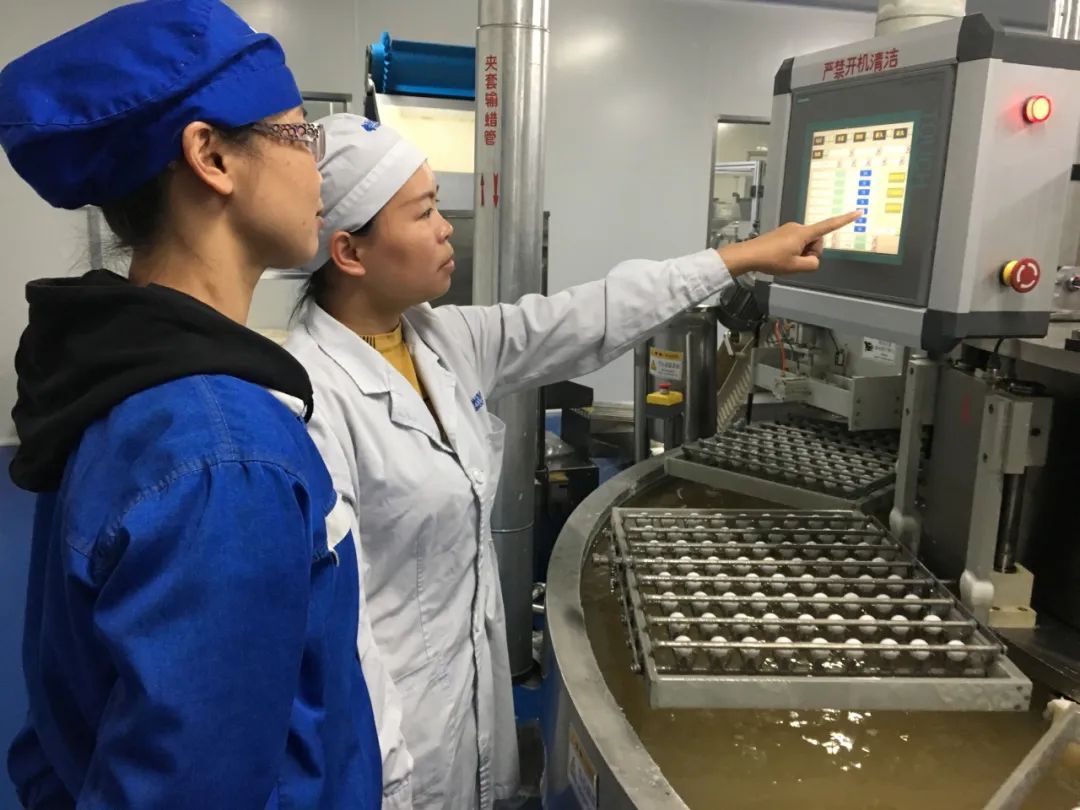 面對(duì)這個(gè)問題,雷潔萍和團(tuán)隊(duì)加快技術(shù)改造創(chuàng)新,引進(jìn)兩條大蜜丸全自動(dòng)扣殼、全自動(dòng)蘸蠟設(shè)備聯(lián)動(dòng)生產(chǎn)線。反復(fù)調(diào)試入殼機(jī)扣殼的吻合度與力度,最終實(shí)現(xiàn)機(jī)械設(shè)備間的聯(lián)動(dòng)生產(chǎn),操作人員由100余人壓降到20余人,日產(chǎn)量翻了10倍,大幅提高產(chǎn)能及生產(chǎn)效率,縮短了生產(chǎn)周期。