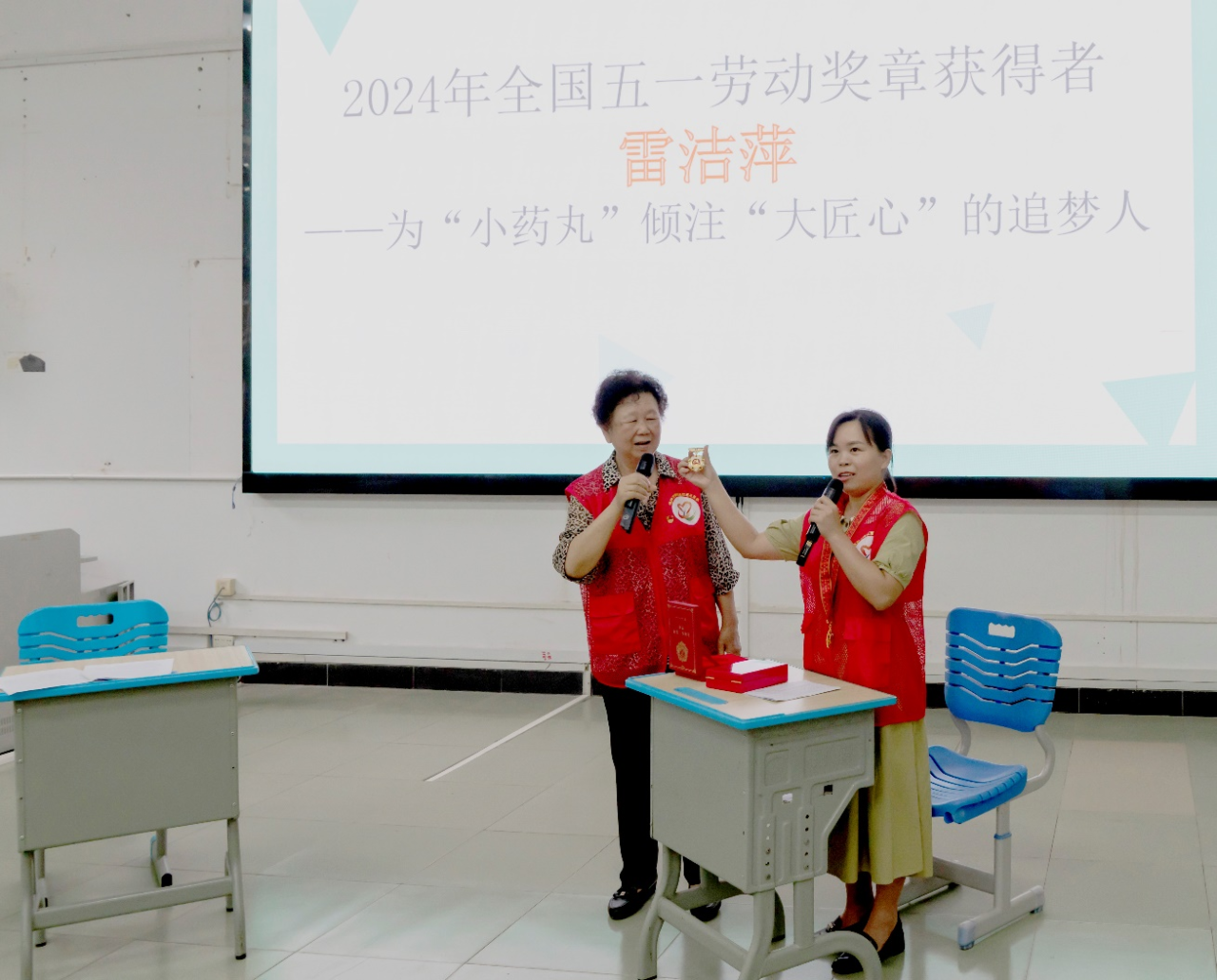 “同學(xué)們,這個是我們小雷師傅今年得到的全國五一勞動獎?wù)?,怎么樣?想要嗎?”老干部局的曾憲真主任拿起金燦燦的獎牌,展示給現(xiàn)場的同學(xué)們。“‘猴賽雷’!看起來好有含金量”“雷姐姐太贊了,是我們學(xué)習(xí)的好榜樣”同學(xué)們的贊美崇拜之情溢于言表。