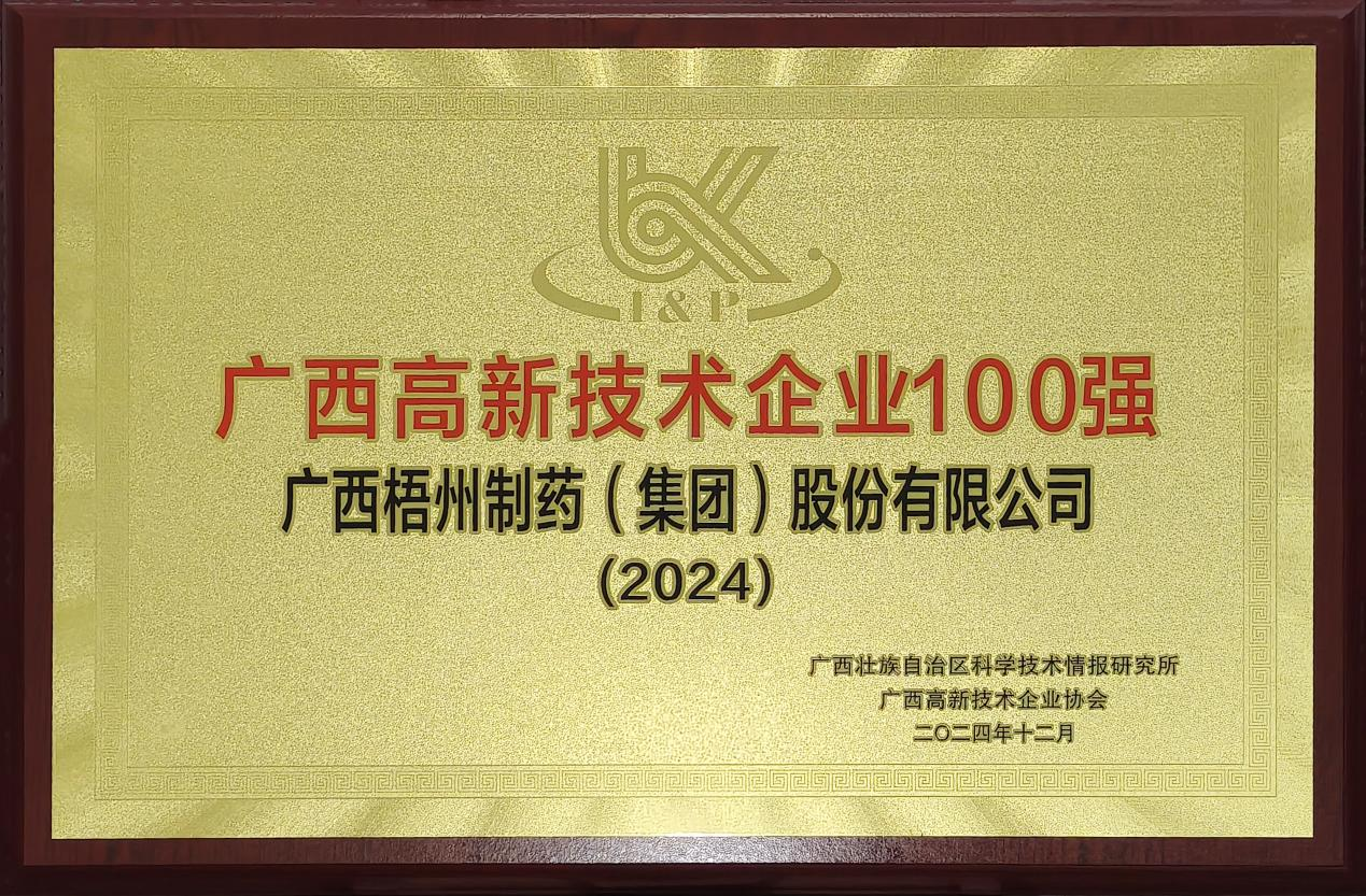 近日,標(biāo)志著“2024年廣西高新技術(shù)企業(yè)百強(qiáng)”榮譽(yù)的官方牌匾,正式送達(dá)廣西梧州制藥(集團(tuán))股份有限公司(以下簡稱:梧州制藥)。這不僅為此次評選畫上圓滿句號,也意味著梧州制藥成功實(shí)現(xiàn)了自2023年以來的連續(xù)兩年蟬聯(lián),充分彰顯了其穩(wěn)固的創(chuàng)新優(yōu)勢和行業(yè)競爭力。