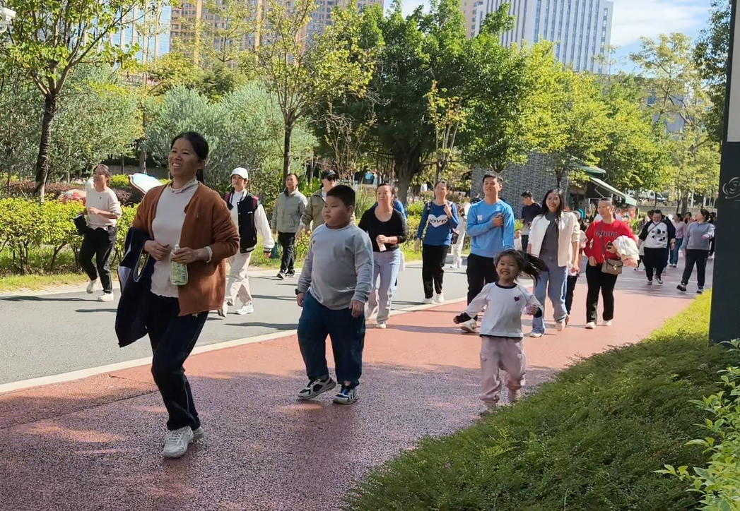 游戲環(huán)節(jié)結束后,工會組織開展了親子環(huán)湖健走活動。50余組家庭攜手出發(fā),沿澄澈的玫瑰湖畔漫步前行。為保障活動安全有序,工會提前勘察路線,沿途設置3個補給站,志愿者貼心提供飲用水和小食品。家長與孩子們或緩步交談,或駐足賞景,或拍照留念,將湖畔的美景與親子的笑顏一一定格,歡聲笑語縈繞在整個環(huán)湖路上。