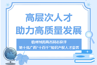 梧州制藥兩名同志獲評第十批廣西“十百千”知識(shí)產(chǎn)權(quán)人才榮譽(yù)高層次人才助力高質(zhì)量發(fā)展近日,自治區(qū)市場監(jiān)管局公布第十批廣西“十百千”知識(shí)產(chǎn)權(quán)人才名單,廣西梧州制藥(集團(tuán))股份有限公司副董事長、總經(jīng)理劉洋同志獲“A